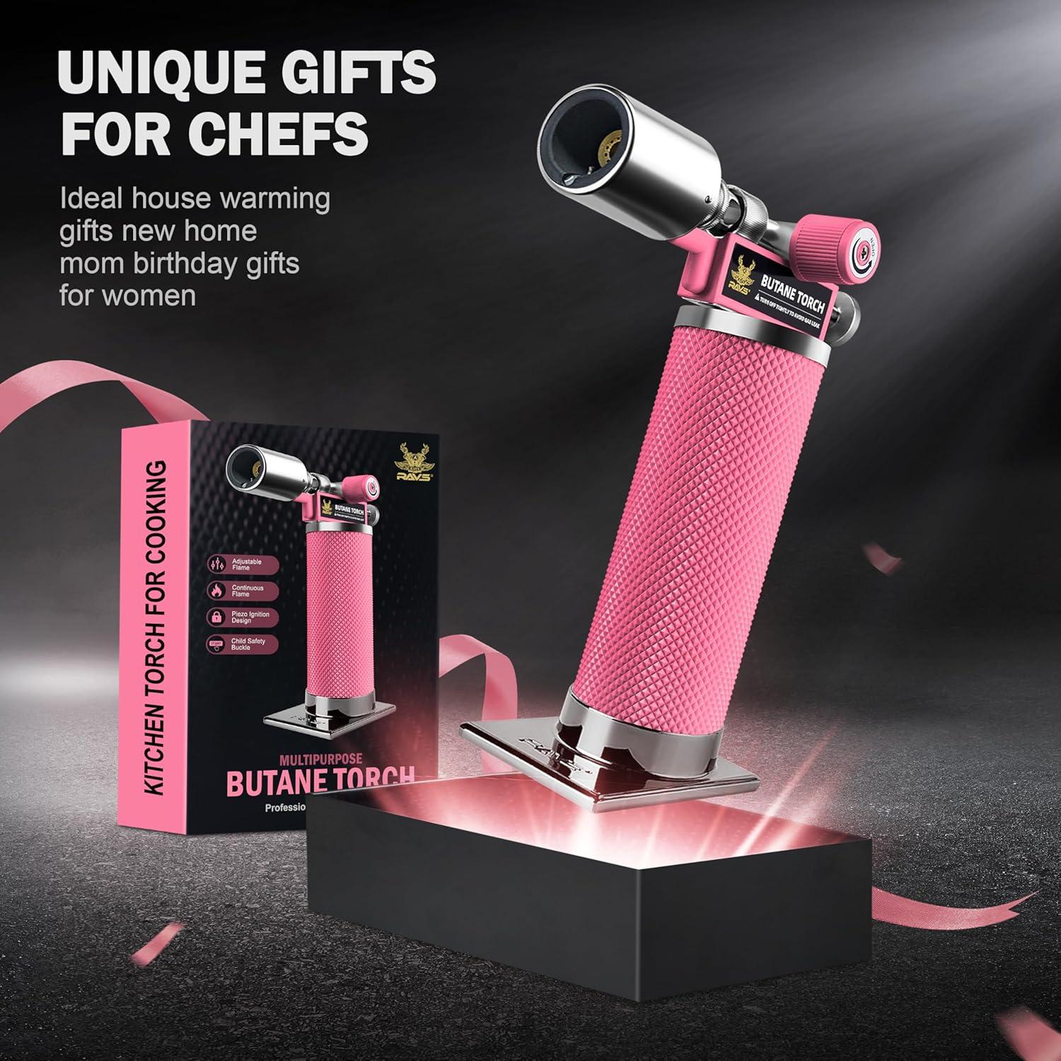 RAVS Butane Torch Lighter, Creme Brulee Torch with Adjustable Flame, Kitchen Torch for Baking, BBQ, DIY, Christmas Gifts Stocking Stuffers Gifts for Women, Orange, Butane Gas Not Included(Pink)