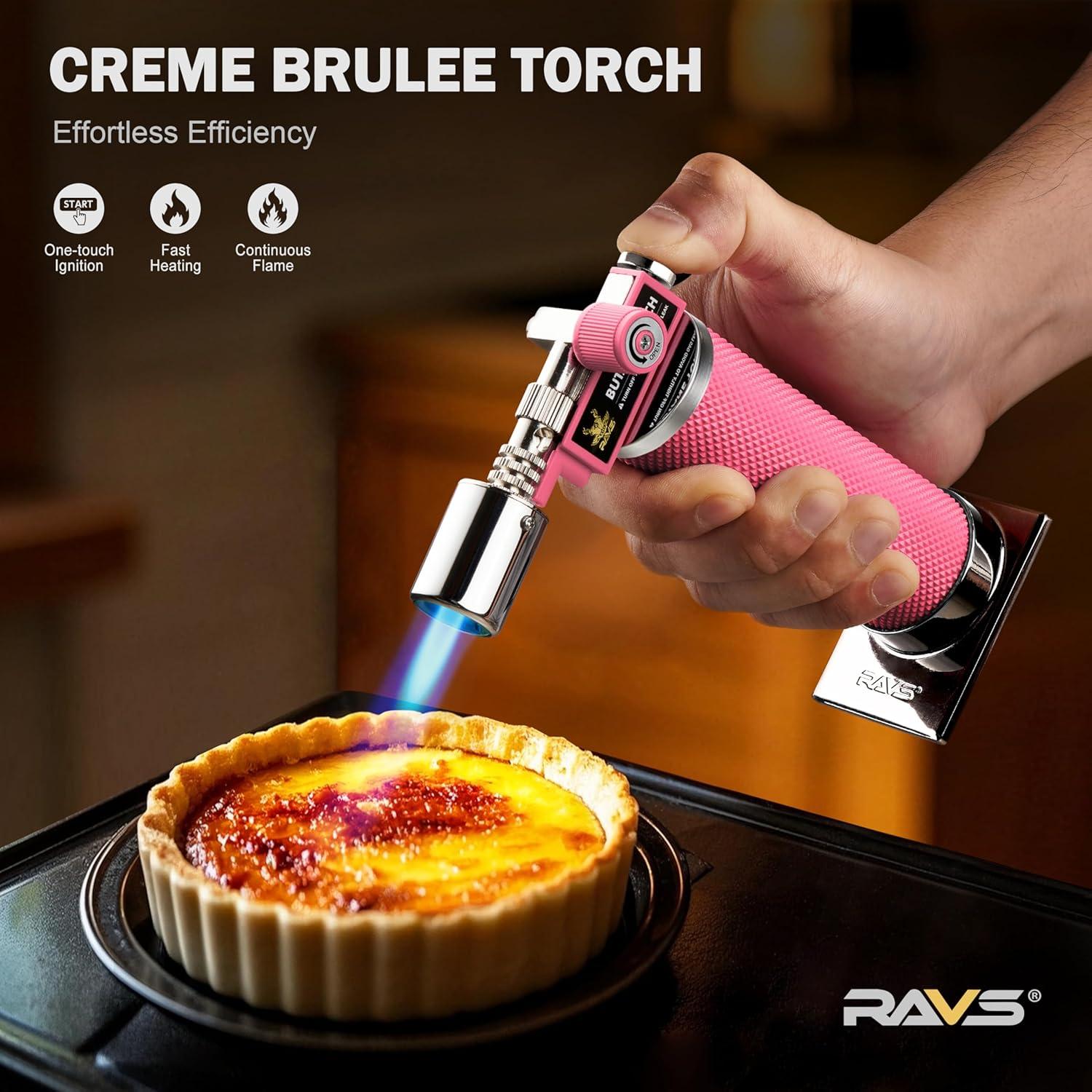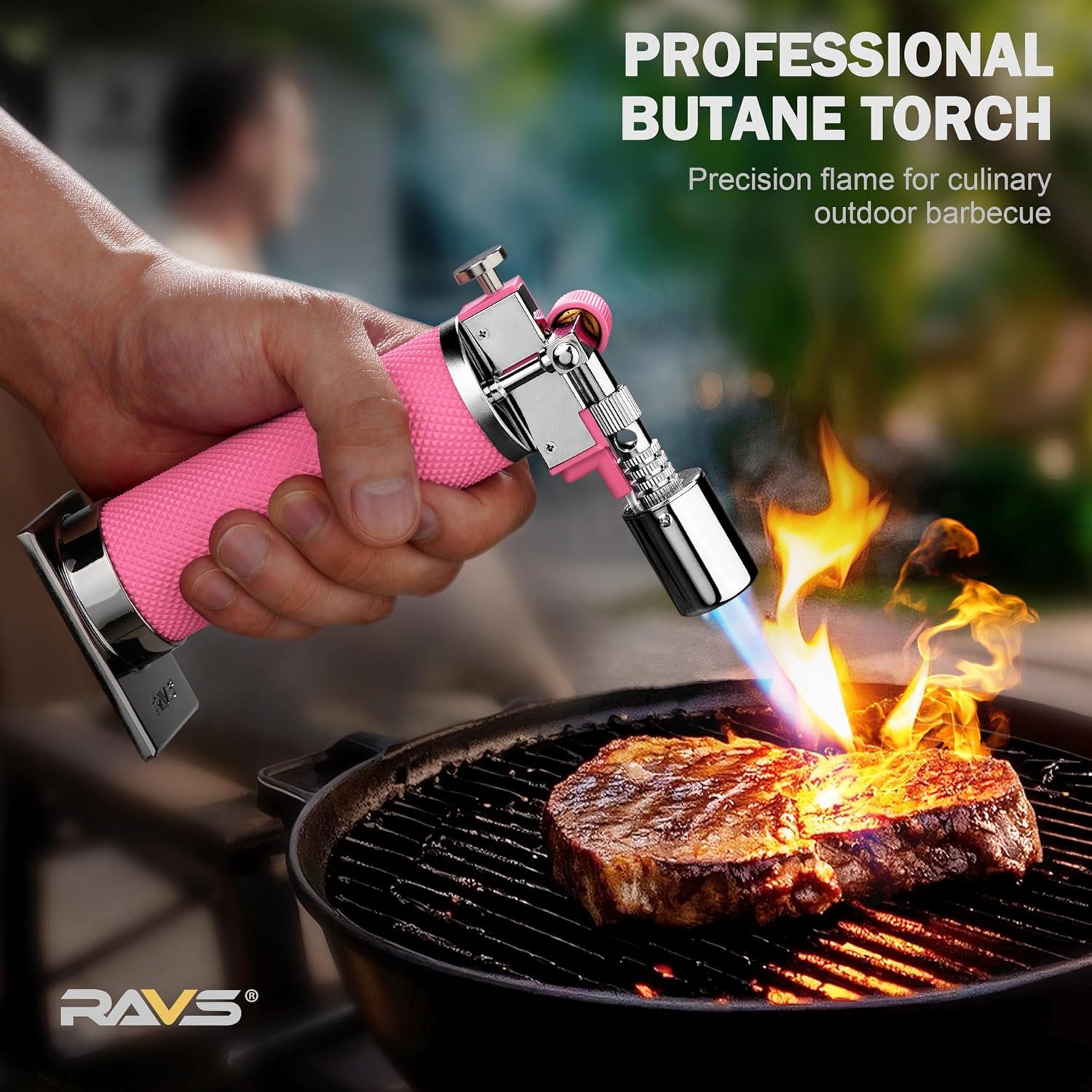 RAVS Butane Torch Lighter, Kitchen Torch with Adjustable Flame, Cooking Torch for Creme Brulee, BBQ, DIY, Christmas Gifts Stocking Stuffers Gifts for Women, Brown, Butane Gas Not Included(Pink)