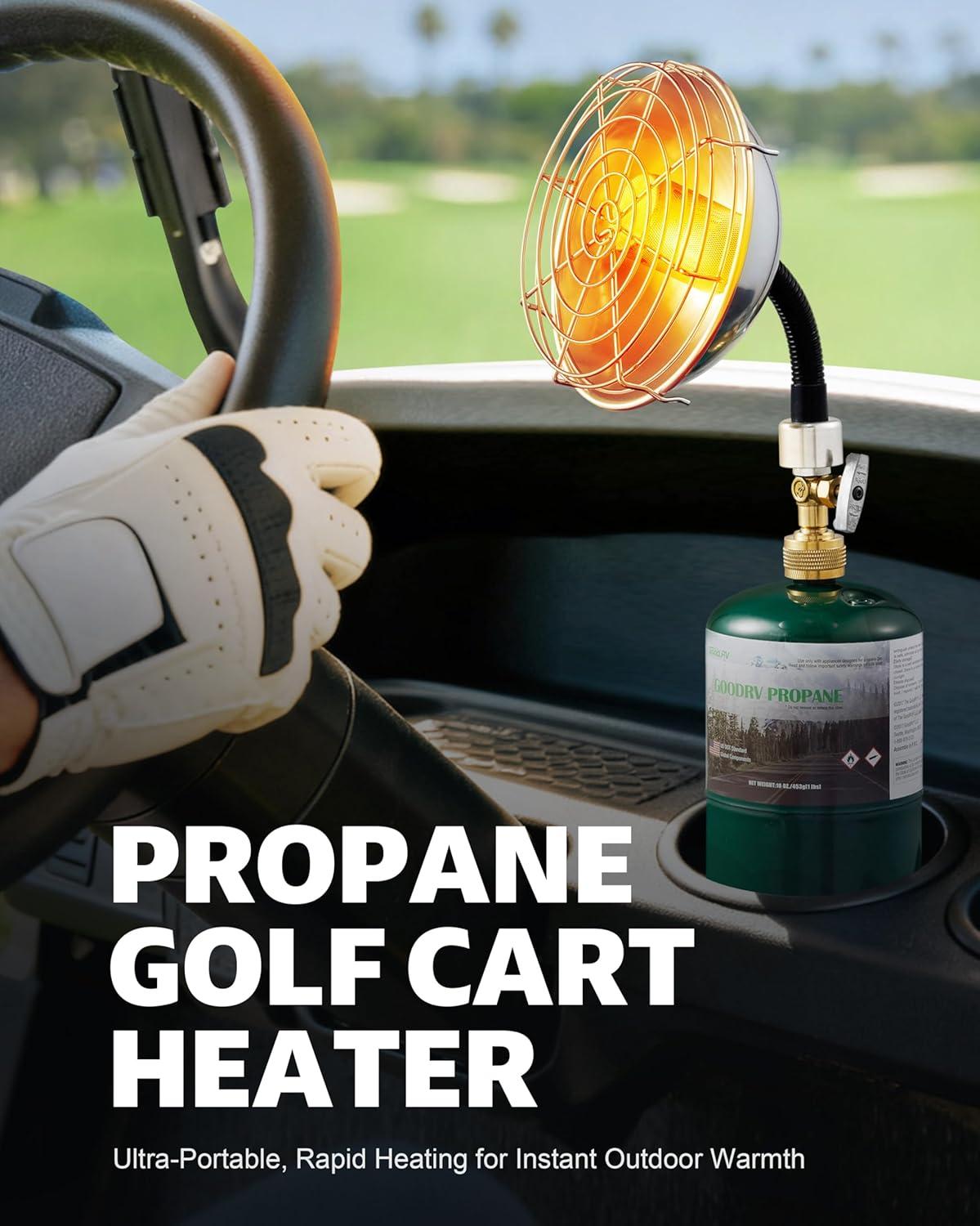 Secure, Stable Design: The golf cart heater is built with a foldable tank holder to prevent tipping and ensure stability. The protective front grill helps prevent scalding. Important: For safety, always use in a well-ventilated outdoor area. Do not touch any of the heated parts of the appliance during use.
