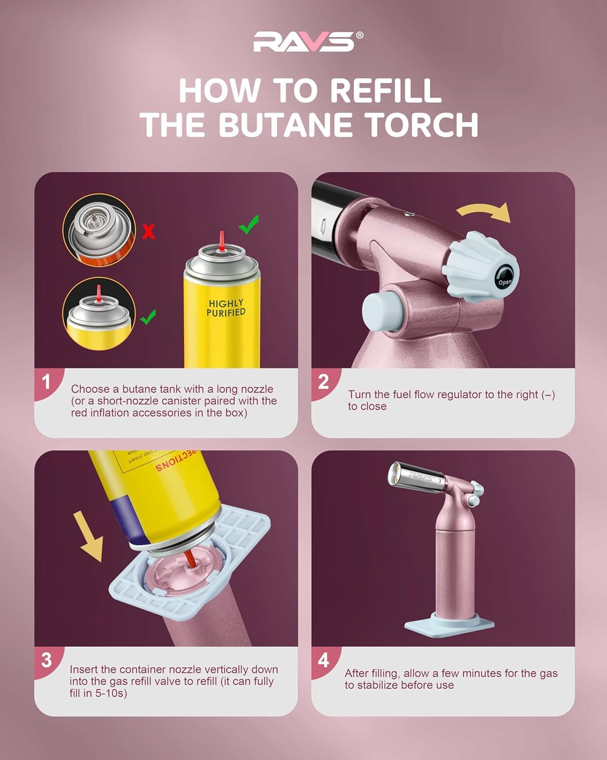 Multipurpose Blow Torch: From culinary to industrial welding. Master gourmet cooking (sous-vide searing, baking, creme brulee) and industrial tasks (pipe soldering, resin art) with RAVS portable hand torch. The blow torch for cooking is great for use in kitchens, workshops, and outdoor BBQsessions.